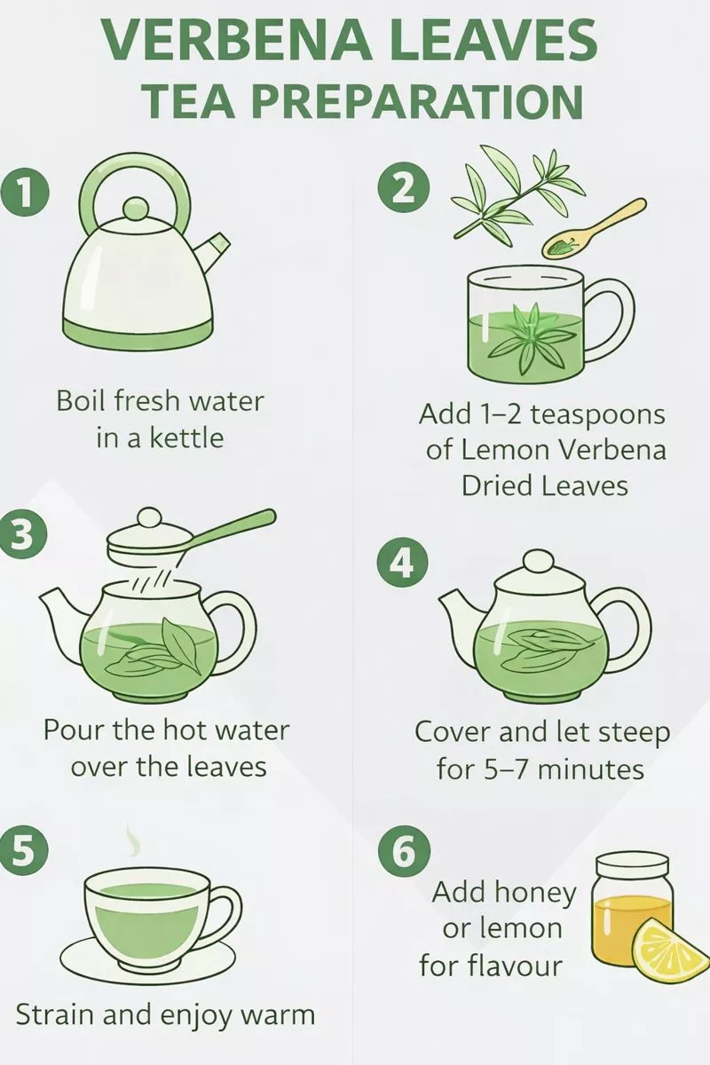 Because of its naturally calming effects, Verbena tea is especially recommended in the evening, helping to ease the mind and prepare the body for restful sleep. Its high content of soothing compounds makes it an ideal choice for unwinding and supporting a peaceful night’s rest.